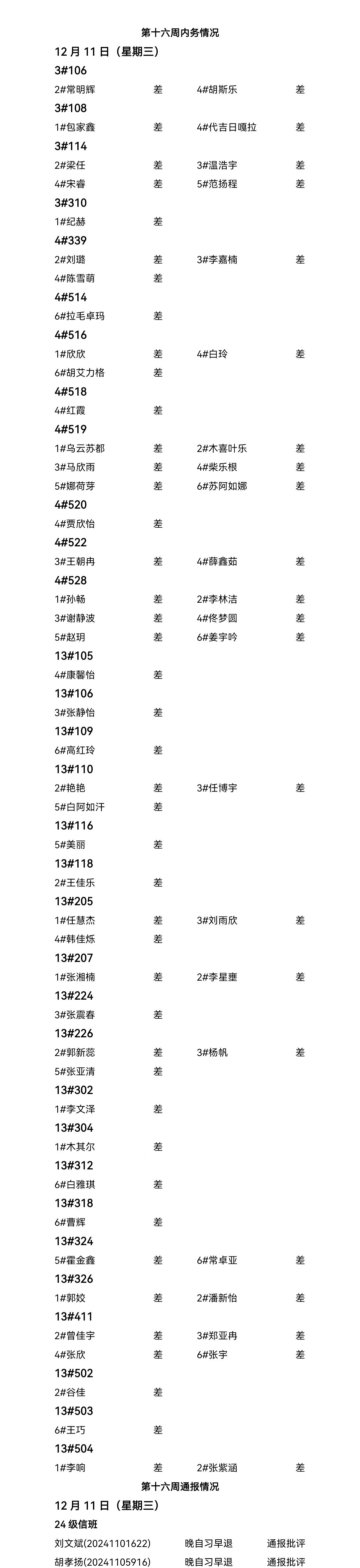 beat365英国官方网站2024——2025年度第一学期第十六周通报情况