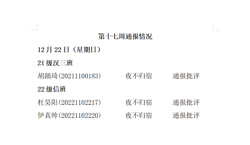 beat365英国官方网站2024——2025年度第一学期第十七周通报情况