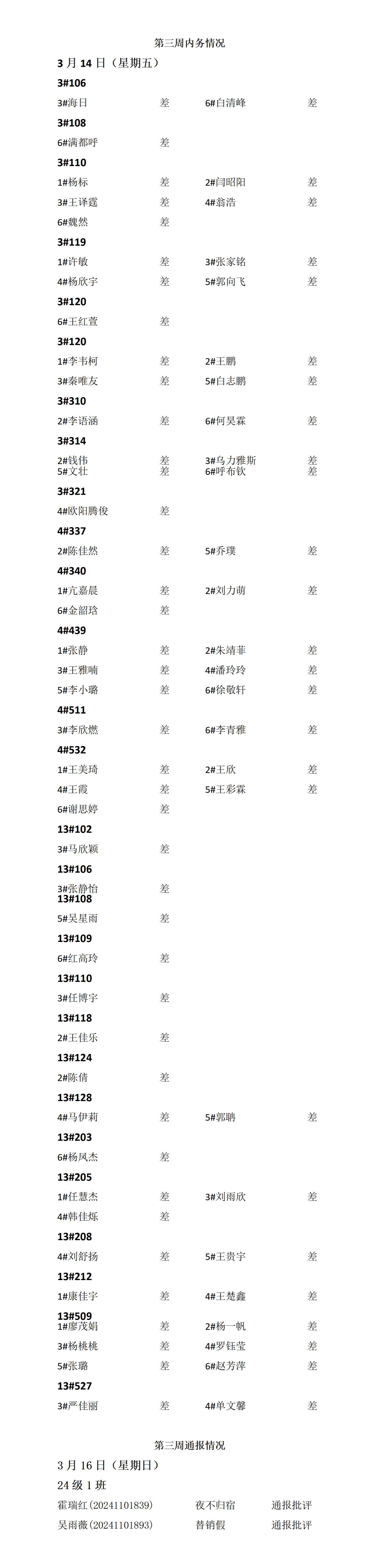 beat365英国官方网站2024——2025年度第二学期第三周通报情况