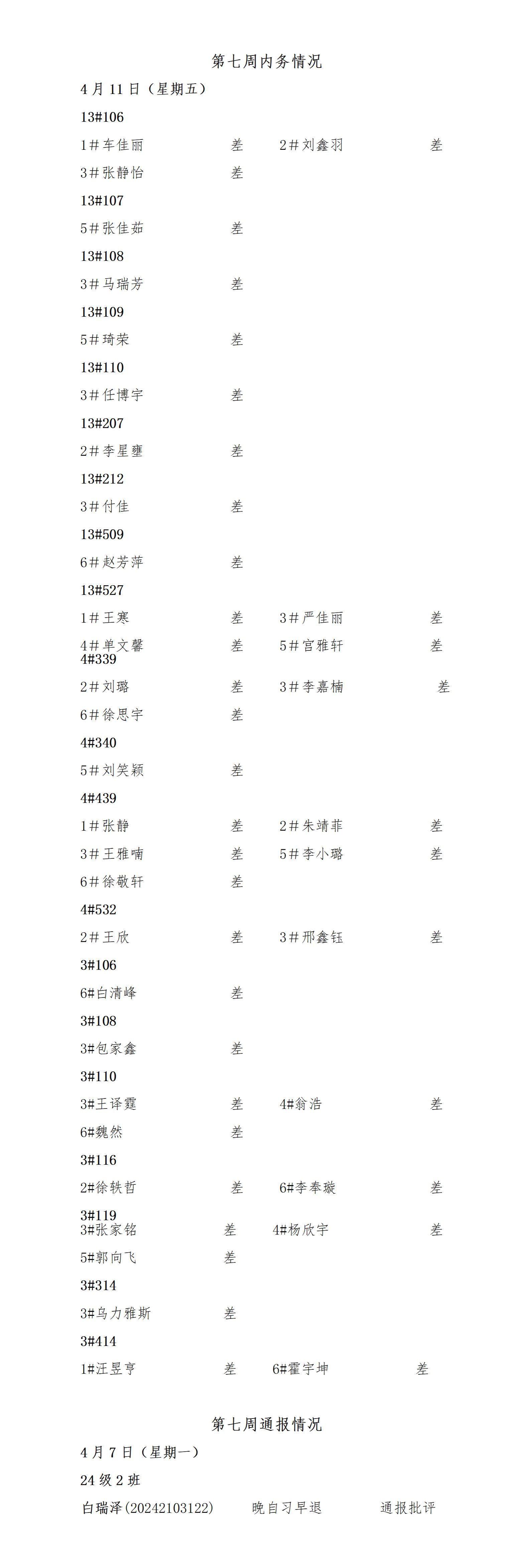 beat365英国官方网站2024——2025年度第二学期第七周通报情况