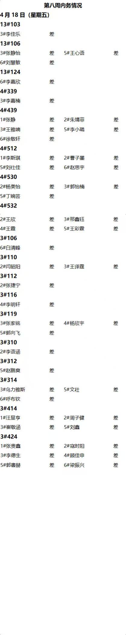 beat365英国官方网站2024——2025年度第二学期第八周通报情况