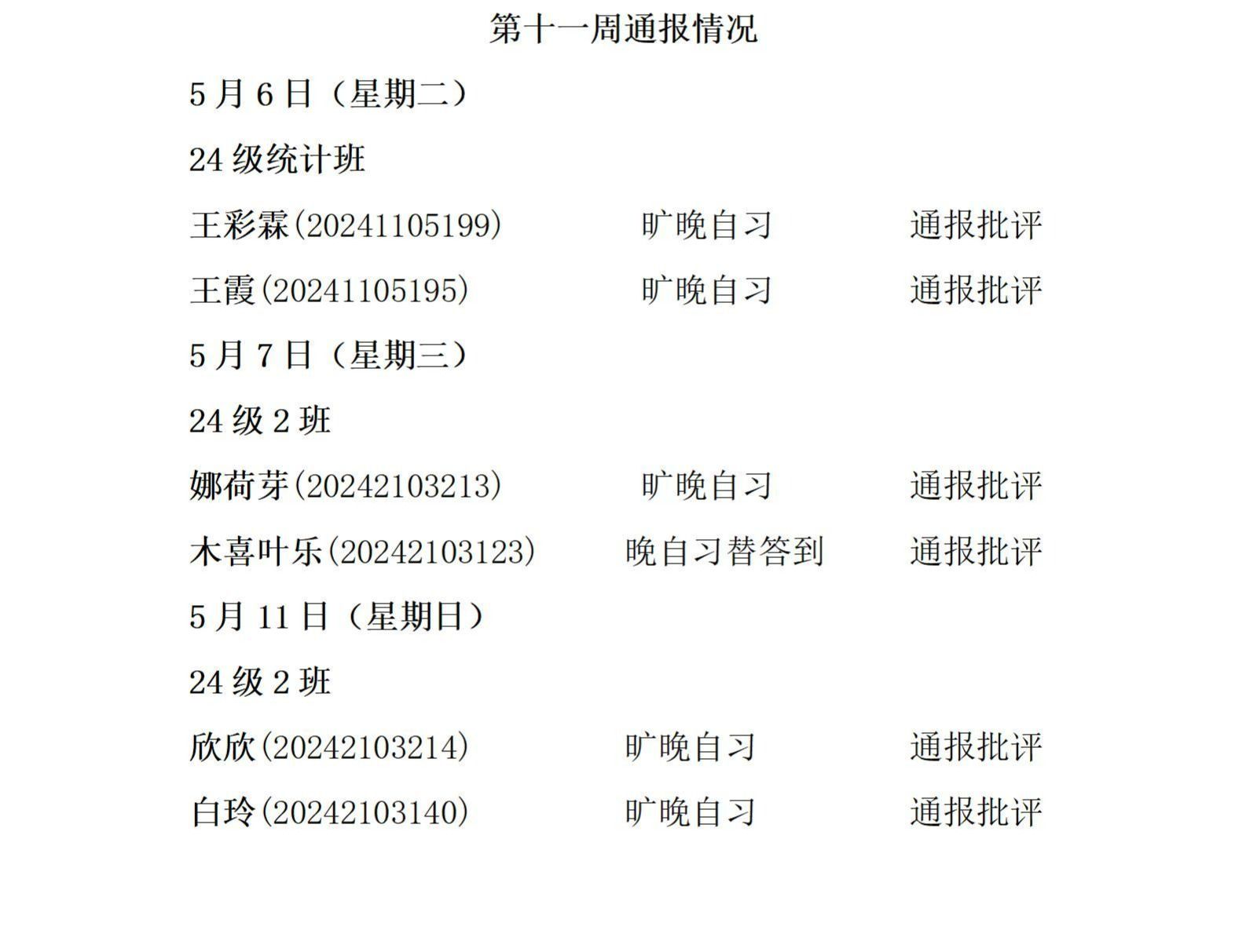 beat365英国官方网站2024——2025年度第二学期第十一周通报情况