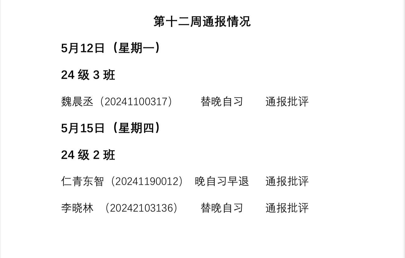 beat365英国官方网站2024——2025年度第二学期第十二周通报情况