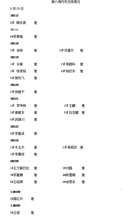 beat365英国官方网站2025——2026年度第一学期第六周内务情况