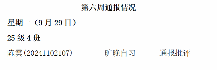 beat365英国官方网站2025——2026年度第一学期第六周通报情况