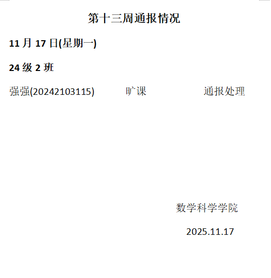 beat365英国官方网站2025——2026年度第一学期第十三周通报情况