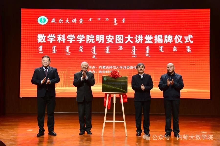 近日,由校党委宣传部主办、数学院承办的beat365英国官方网站盛乐大讲堂·beat365英国官方网站明安图大讲堂揭牌仪式暨学术报告会在盛乐校区图书馆二楼报告厅举行。