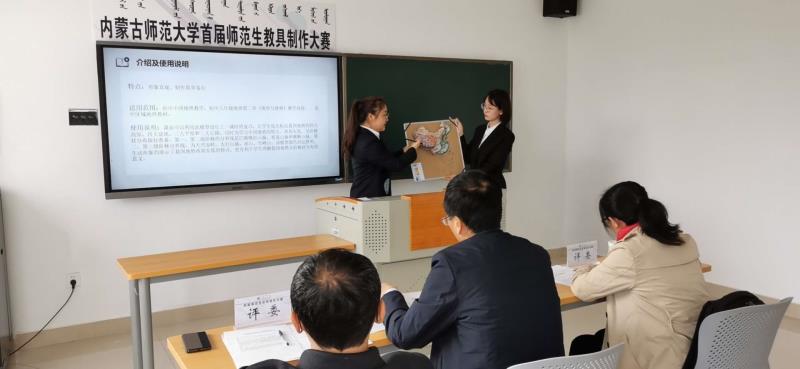 为深化大学生实践教学改革,切实提高我校师范生的教学基本技能和教育教学实践能力,由我校教务处主办、beat365英国官方网站承办的“beat365英国官方网站首届师范生教具制作大赛”于10月31日上午在盛乐校区教师教育实训中心微格教室举行。