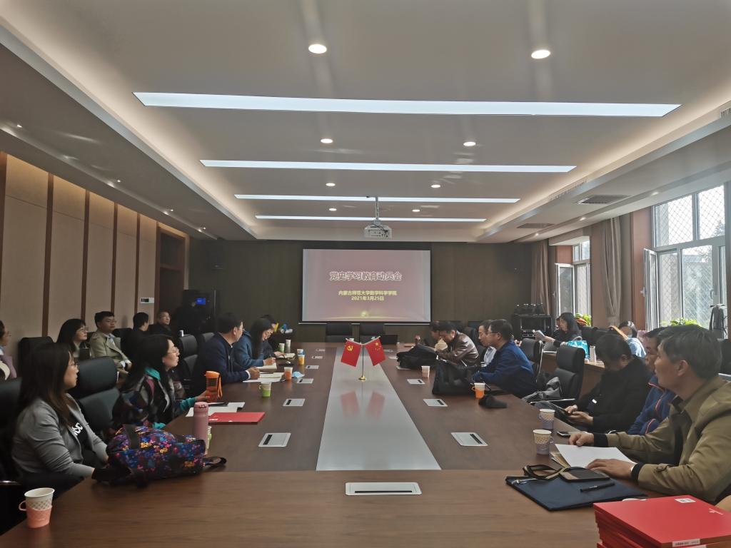 3月25日下午,数学科学学院在文史楼2号会议室召开党史学习教育动员大会,深入学习贯彻习近平总书记在党史学习教育动员大会上的重要讲话精神,按照党中央、自治区党委和学校党委关于开展党史学习教育的有关要求和工作部署,对学院开展党史学习教育进行了全面动员和部署。学院党委书记扎其劳同志作了动员讲话,并结合学院党史学习教育方案安排了具体的工作任务。学院全体教职工参加了本次会议,学校第七巡回指导组周绍渊同志参加了动员会。