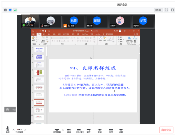 2022年4月20日19:00—21:00beat365英国官方网站在线开展“国家一流专业建设、虚拟教研室建设、内蒙古应用数学中心”系列讲座。本次特邀请国家教学名师、西安电子科技大学刘三阳教授作主题为“教学能力纵横谈”的报告。报告由包霞副院长主持,院长扎其劳教授、党委书记李联和教授、副书记季建光老师及学院全体教师和慕名而来的其他院校部分教师聆听了本次报告。