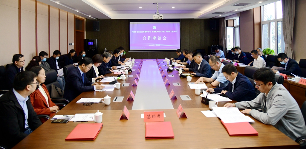 5月20日上午,内蒙古自治区应用数学中心、中国航天科工集团第六研究院、内蒙古工业大学合作座谈会暨三方合作签约仪式在文史楼2号会议室举行。座谈会由科技处(社科处)处长贾美林主持。