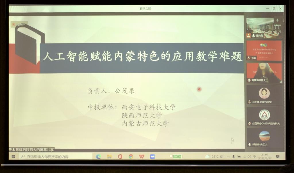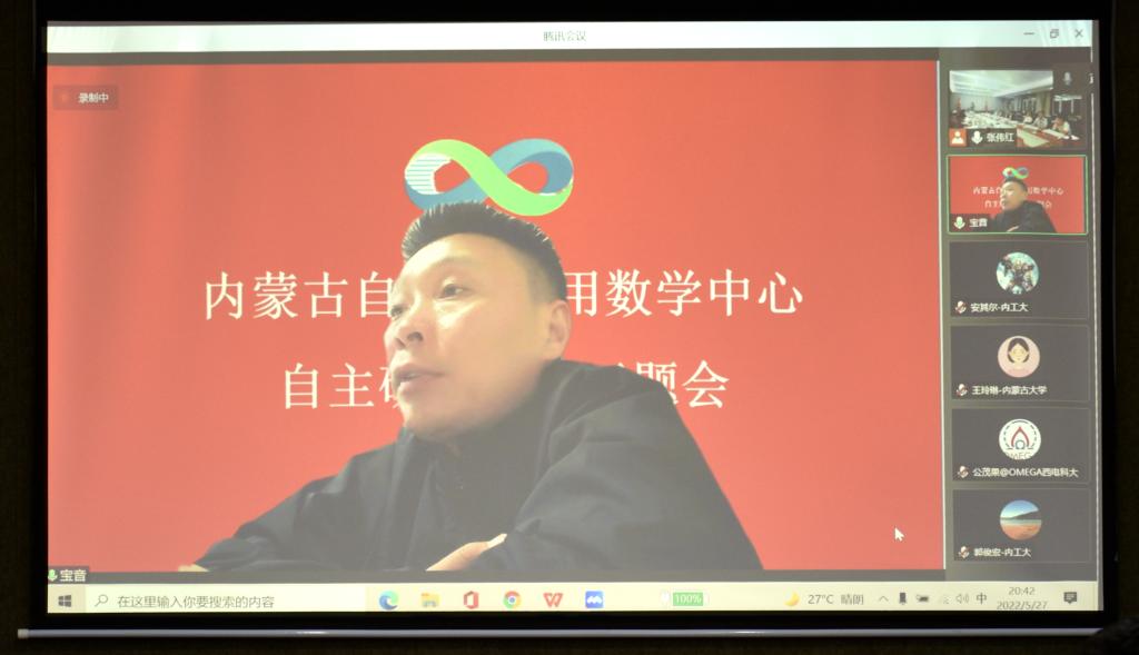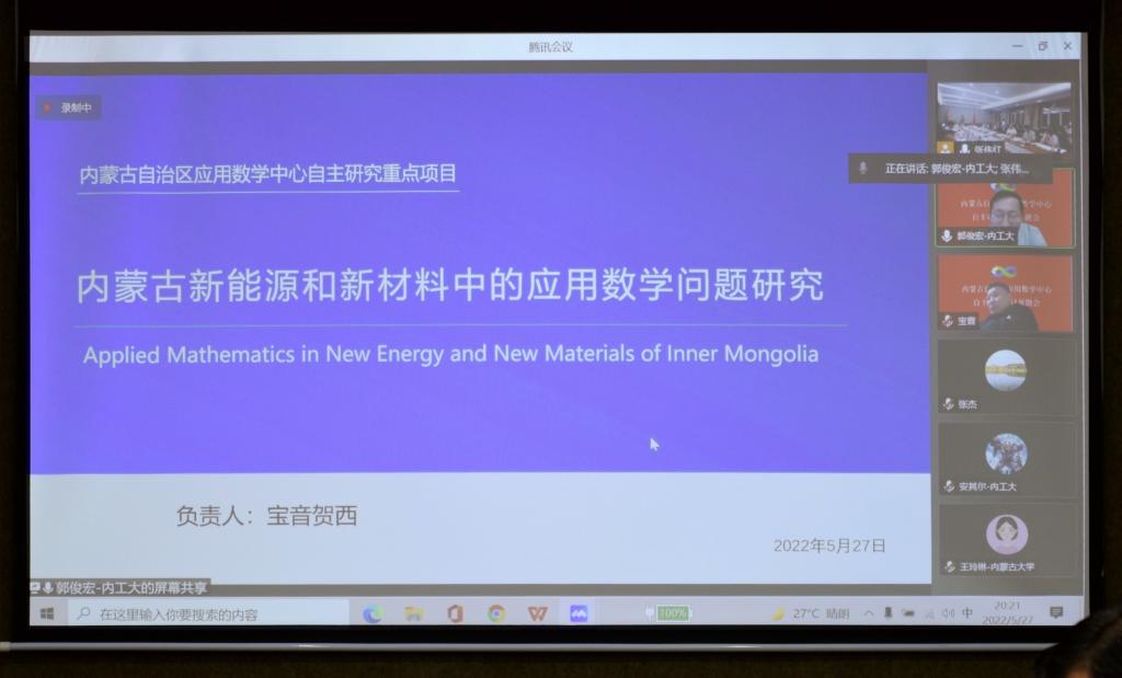 5月27日,内蒙古自治区应用数学中心(以下简称中心)自主研究项目启动会在我校召开,会议采取线上、线下相结合的方式进行。自然资源部第一海洋研究所研究员、中国石油大学(华东)海洋与空间信息学院院长张杰,内蒙古工业大学副校长宝音贺西,西安电子科技大学人才处处长宫茂果等项目负责人以及来自中国石油大学、西安电子科技大学、陕西师范大学、内蒙古大学、beat365英国官方网站、内蒙古农业大学、内蒙古工业大学、内蒙古财经大学、内蒙古宜和新能源科技有限公司、北京鉴衡认证中心等区外、区内高校和企业的项目团队骨干,我校党委书记阿拉坦仓,党委委员、副校长宫箭及相关部门、学院负责同志共40余人参加项目启动会。项目启动会由中心办公室主任、beat365英国官方网站院长扎其劳主持。