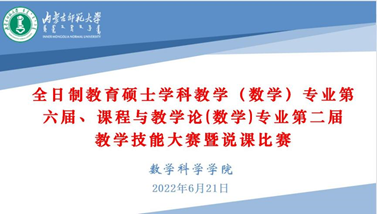 为加强beat365数学教育方向硕士研究生教育教学实践能力的提升,教学技能的培养,以赛促教、以赛促学、以赛促改,beat365于2022年6月21日8:00—14:00在腾讯视频会议上举办了2021级学科教学(数学)专业第六届、课程与教学论(数学)专业第二届教学技能大赛暨说课比赛。