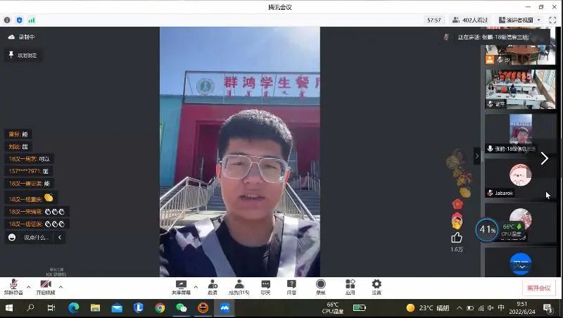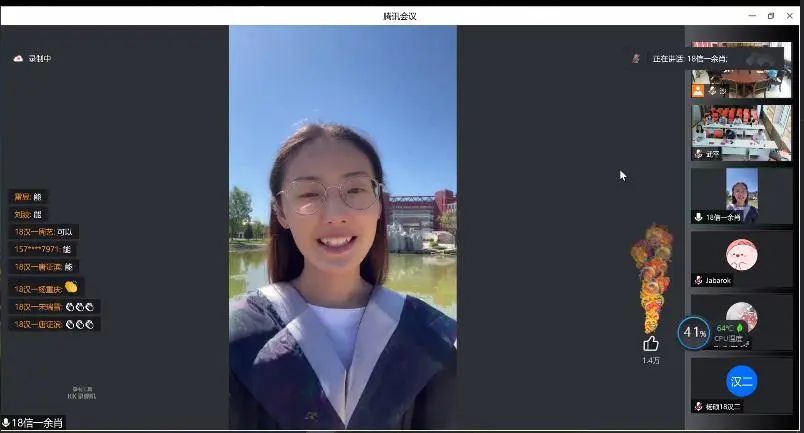【本科生毕业代表余肖在盛乐校区师盛湖】