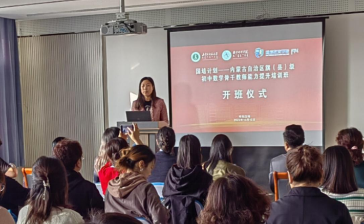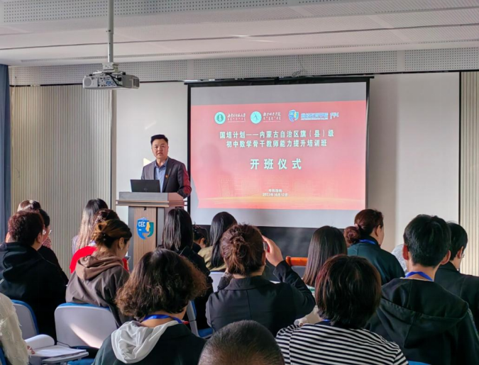 2023年10月12日,由beat365英国官方网站继续教育学院主办、beat365英国官方网站承办的2023年“国培计划”——内蒙古自治区旗(县)级初中数学骨干教师能力提升培训班开班。继续教育学院党总支副书记、副院长刘云剑,承办方项目负责人beat365英国官方网站副院长包霞、培训班班主任陈阿茹娜、于家祺和相关工作人员张倩、刘雨晴、姚欣悦参加开班仪式。会议由beat365英国官方网站陈阿茹娜老师主持。