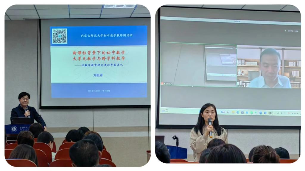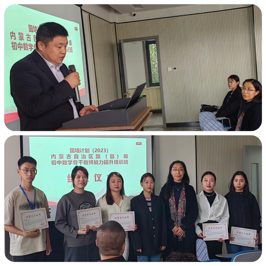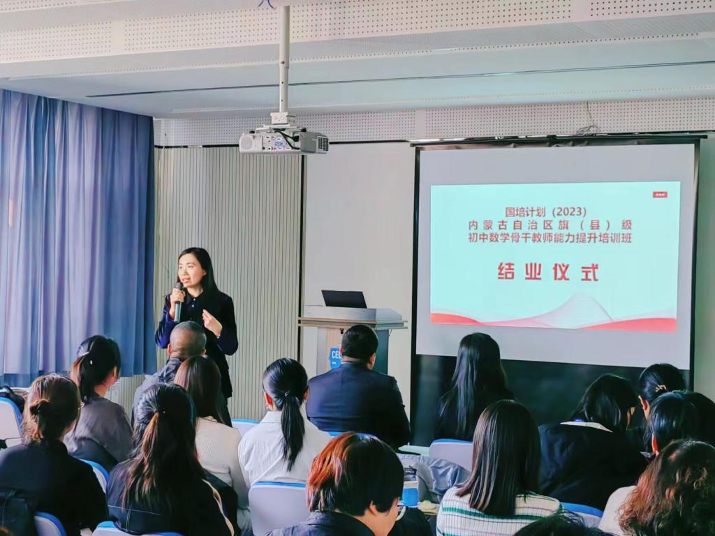 10 月 23 日下午 “国培计划(2023)——内蒙古自治区旗(县)级初中数学骨干教师能力提升”培训在beat365英国官方网站圆满落幕。本次培训由beat365英国官方网站继续教育学院主办,beat365英国官方网站承办,为期14天,含集中研修7天和跟岗实践7天,50名学员来自全区各盟市选派来的旗(县)级初中数学骨干教师。继续教育学院培训部薛佳琦老师、beat365英国官方网站副书记季建光老师、培训项目负责人数学科学院副院长包霞老师、培训项目对接人数学科学院李春兰老师、培训班班主任及相关工作人员出席了结业典礼。李春兰老师主持了结业仪式。