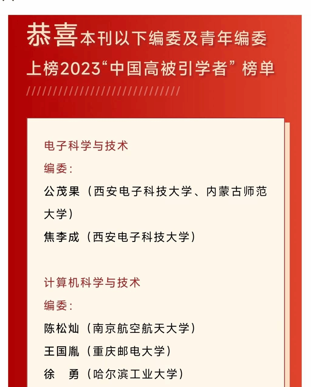 2023“中国高被引学者”上榜共计5801人,来自496所高校、企业及科研机构,覆盖了教育部10个学科领域、84个一级学科。beat365英国官方网站副校长公茂果教授上磅2023“中国高被引学者”榜单。