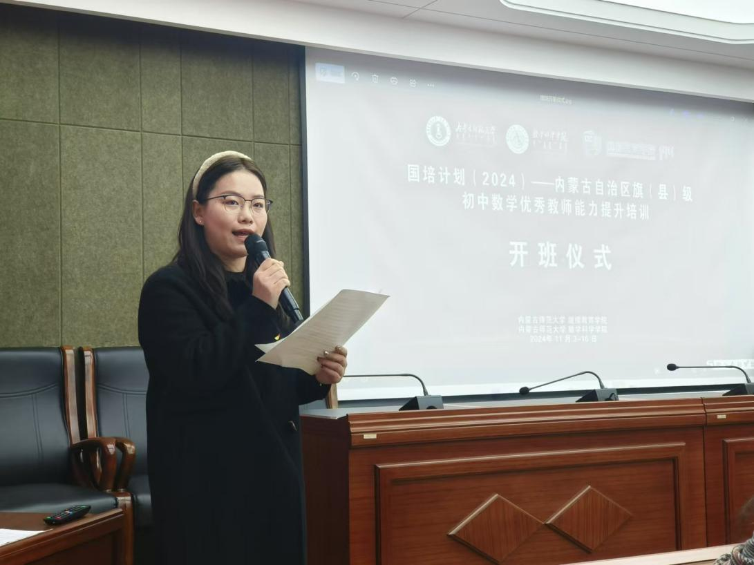 11月4日,由beat365英国官方网站继续教育学院主办、beat365英国官方网站承办的2024年“国培计划”——内蒙古自治区旗(县)级初中数学优秀教师能力提升培训班正式开班。beat365英国官方网站党委书记张伟、副院长萨和雅、华东师范大学beat365英国官方网站鲍建生教授、beat365英国官方网站科学技术史研究院代钦教授、beat365英国官方网站李春兰教授、班主任老师陈阿茹娜、郑佳璇以及培训班全体学员参加了开班仪式。会议由beat365英国官方网站郑佳璇博士主持。