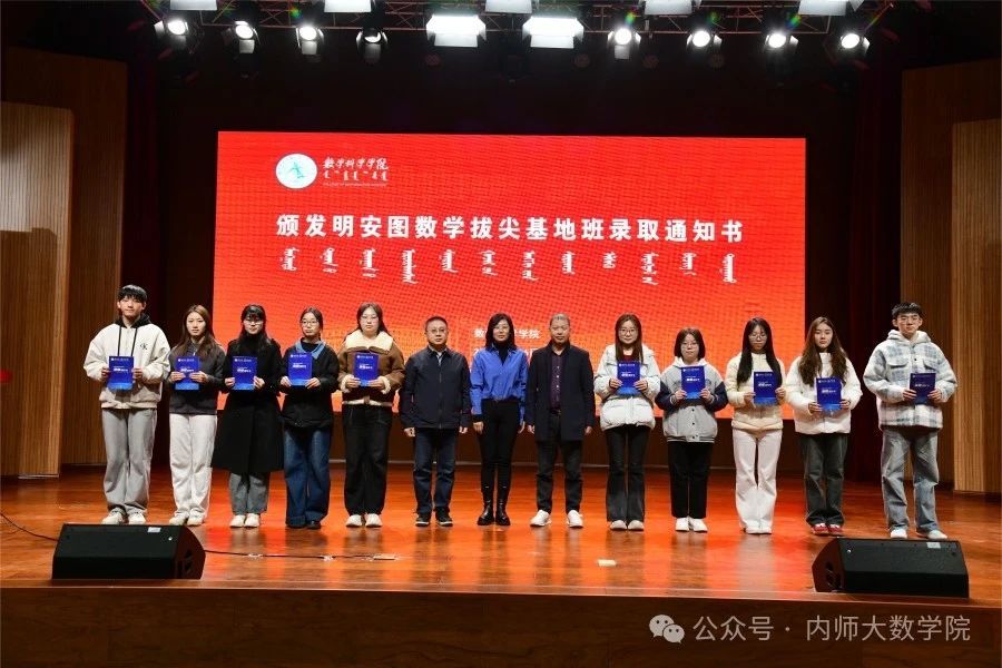 在学校党委和相关部门的大力支持下,beat365英国官方网站积极申报自治区基础学科人才培养基地建设点,成功获批建设“明安图数学拔尖学生培养基地”。经过选拔,来自beat365英国官方网站的20名2024 级同学成为明安图数学拔尖基地班首批学生。3月6日下午,beat365英国官方网站为20名学生颁发了录取通知书。