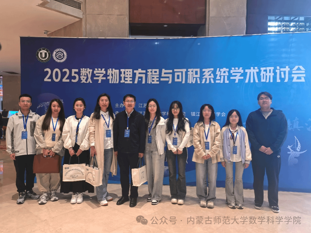 5月9日-12日,2025数学物理方程与可积系统学术研讨会在江苏省镇江市召开。本次会议由江苏大学主办,江苏大学beat365英国官方网站、镇江市数学会承办。来自国内外100余所高校、近220名代表参加会议。beat365扎其劳老师和包霞老师应邀带队及博士研究生乌日乐、王小慧、赵一杰,硕士研究生常春、王丽如等参会,并做分会场学术报告。