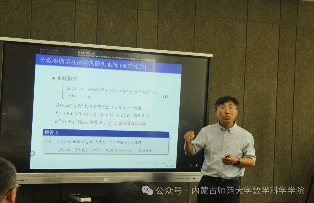 北京交通大学数学与统计学院院长于永光教授和太原理工大学张玲玲教授作了题目为 “随机噪声影响下的分数阶系统的定性分析与控制研究”和“非线性抛物方程的爆破现象及其应用”的邀请报告。天津商业大学吕鑫老师就“基于弱扰动的压电材料轴对称接触振动力学分析”进行了深入探讨。