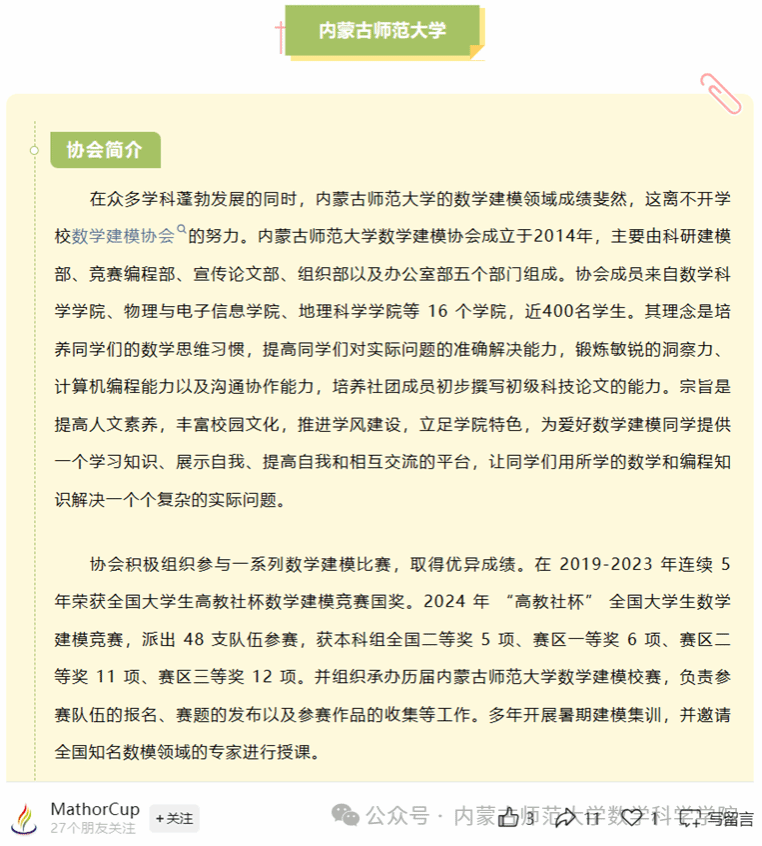 近年来,我校积极推动数学建模与实际应用的深度融合,广泛开展相关教育与教学活动,不断提升学生的数学建模能力,在各类国内竞赛中屡获佳绩。beat365英国官方网站beat365英国官方网站联合数学建模协会首次成为MathorCup数学应用挑战赛的协办单位,并针对比赛进行了专项教学与指导。通过“网络自学—协会指导—导师指正”的多层次学习模式,学生们在浓厚的学术氛围中茁壮成长,最终取得了优异的成绩。