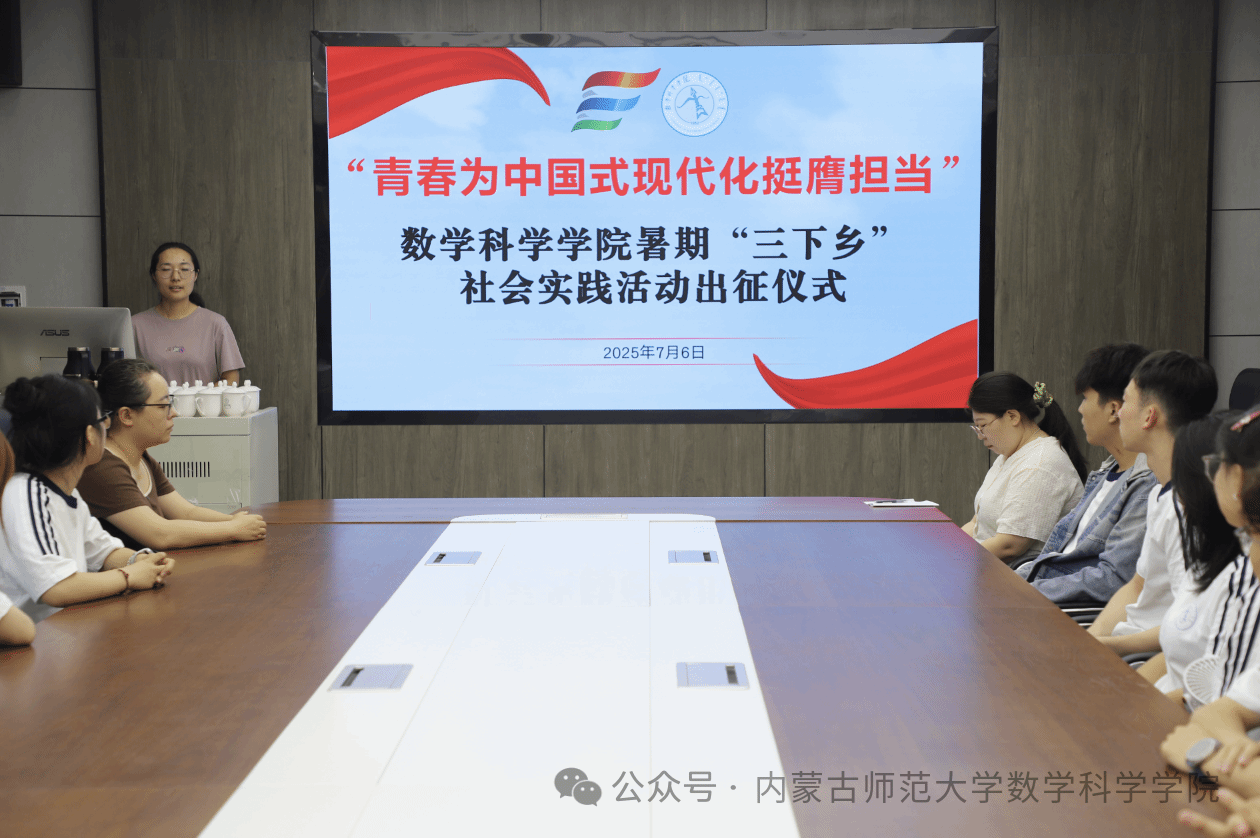 7月6日上午,beat365英国官方网站2025年暑期“三下乡”社会实践活动出征仪式在学院楼会议室举行。团队带队教师刘沙沙、阿茹罕、萨如拉出席仪式,团队16名志愿者参加出征仪式。
