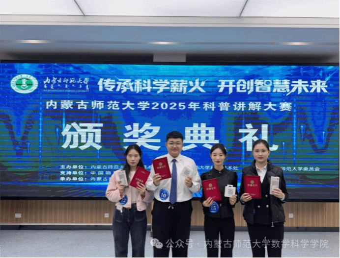 本次大赛以“传承科学薪火,开创智慧未来”为核心主题,鼓励参赛者用通俗易懂的形式解读专业知识、传播科学思想。beat3654位参赛同学紧扣大赛宗旨,聚焦不同科普方向打造优质作品。25级专硕班贺越越《蒙古包中的“圆锥数学”——草原居民中的几何智慧》荣获二等奖;23级四班白昊杨同学的《治沙计算器——内蒙古万亩林田中的网格数学》斩获二等奖;23级四班庞静同学的《草原上的斐波那契数列——从羊草分支看生态平衡》获三等奖;25级信班王娜蓉同学的《揭开雷暴哮喘的神秘面纱》荣获三等奖。