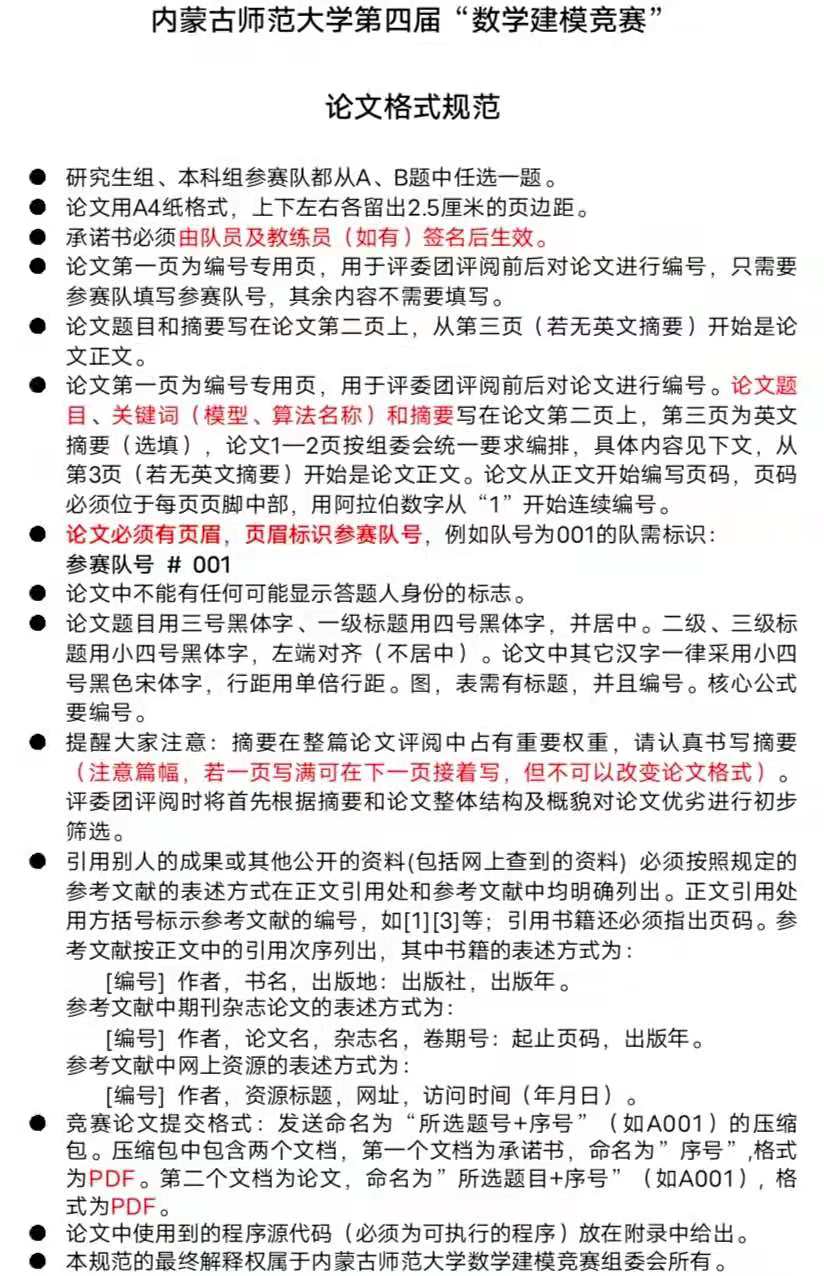 beat365英国官方网站第四届“数学建模竞赛”论文格式规范