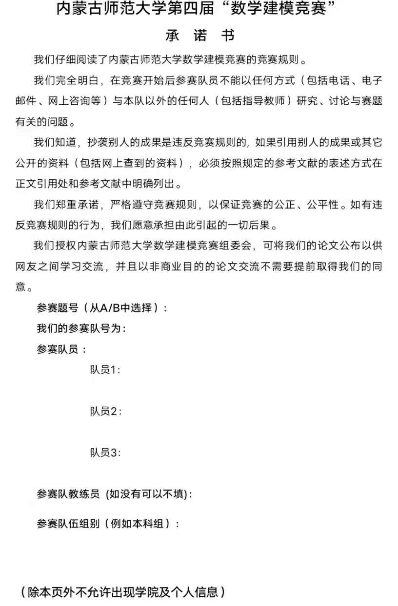 beat365英国官方网站第四届“数学建模竞赛”承诺书