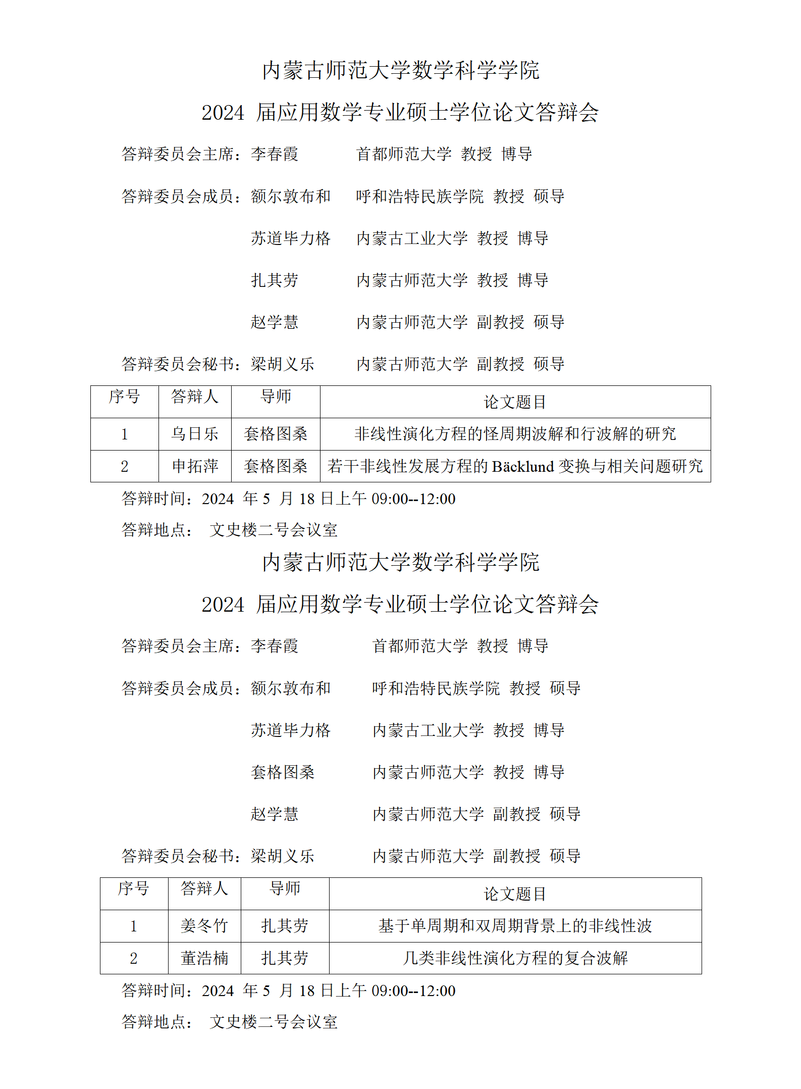 2024届数学专业硕士学位论文答辩会(二)