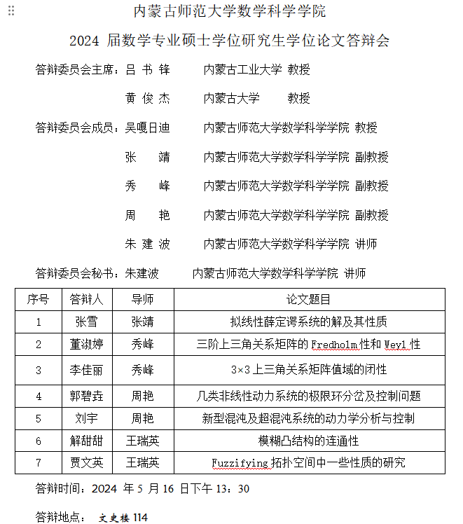2024届数学专业硕士学位论文答辩会(四)